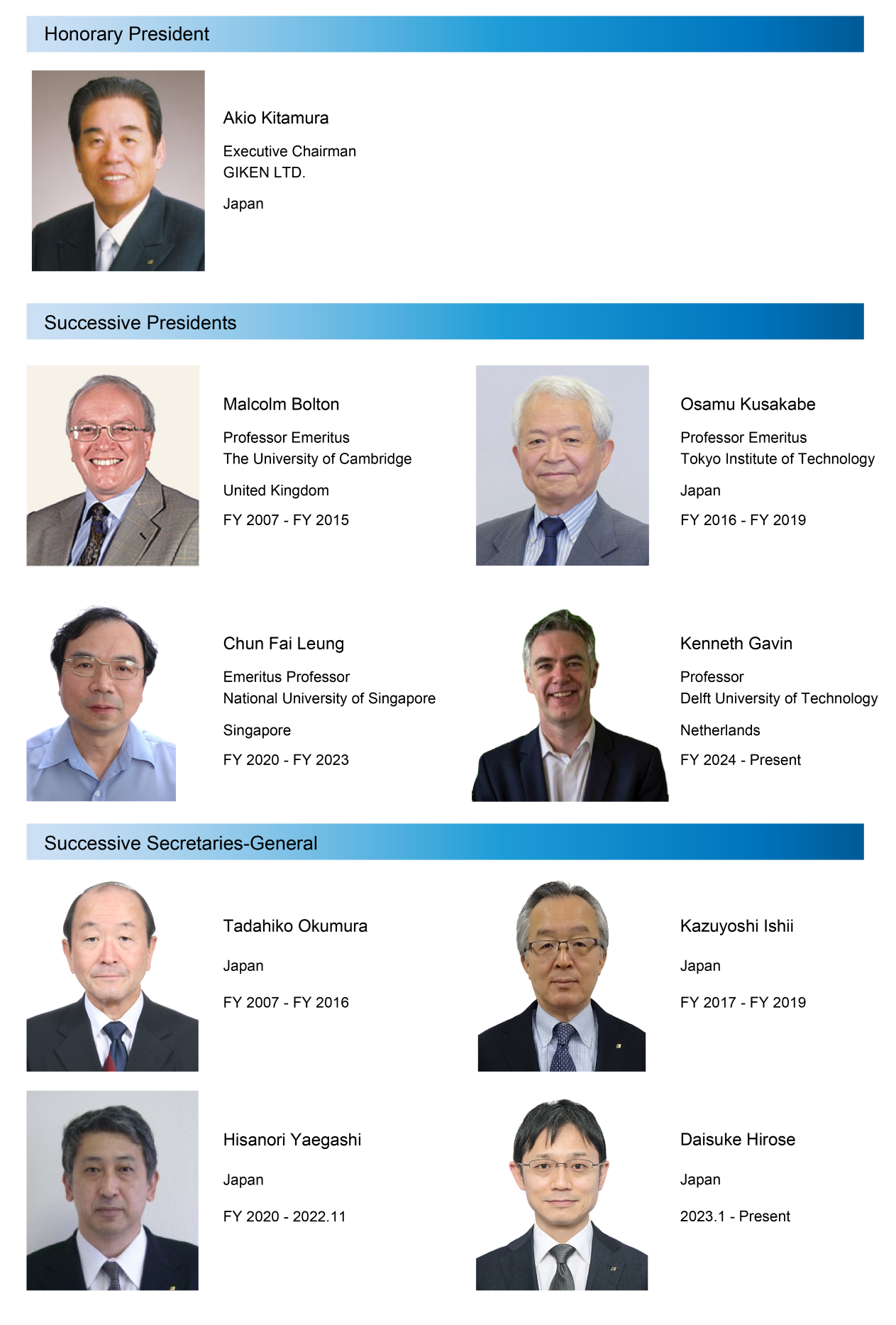 Honorary President, Successive Presidents and Successive Secretaries-General