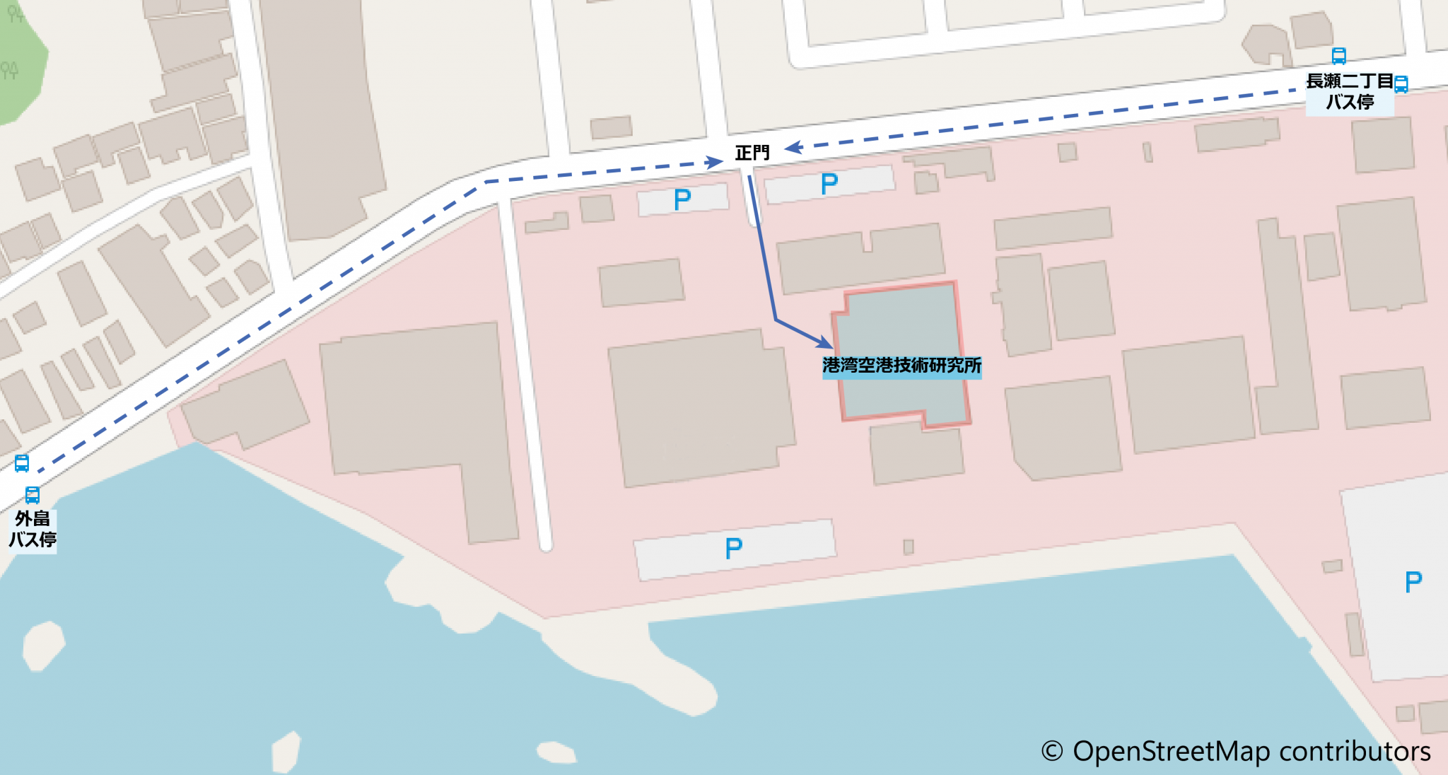 バス停(「外畠」または「長瀬二丁目」)から正門まで徒歩